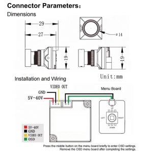 - Supports 5-40V Wide Voltage InputCompatible with most FPV drones, monitoring hosts, and industrial control systems. The 3-pin connector simplifies the installation process, allowing even first-time B2B engineers to quickly integrate it into existing systems.