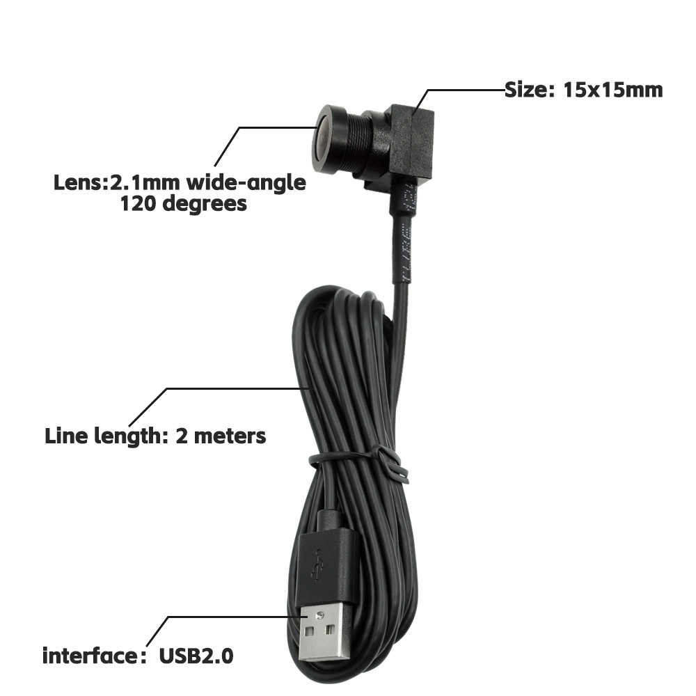 This mini USB wide-angle camera features an ultra compact 15×15mm size, a 120 degree wide-angle lens, and a 2MP HD image sensor, making it perfect for devices with limited space and precision imaging environments.